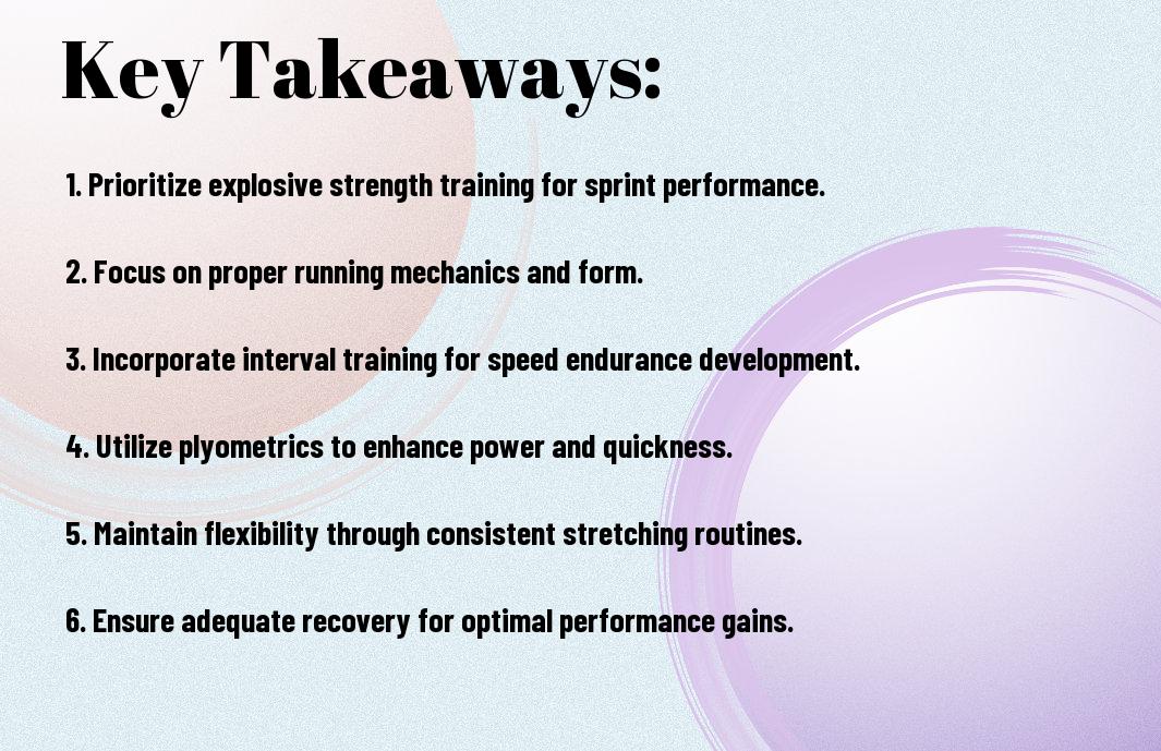 Clearly, developing speed for competitive track and field requires a structured training approach that encompasses various methodologies. Incorporating sprint drills, explosive strength training, and specific conditioning techniques will enhance your overall speed capabilities. It’s necessary to focus on both technical aspects and physical fitness to achieve peak performance on the track.