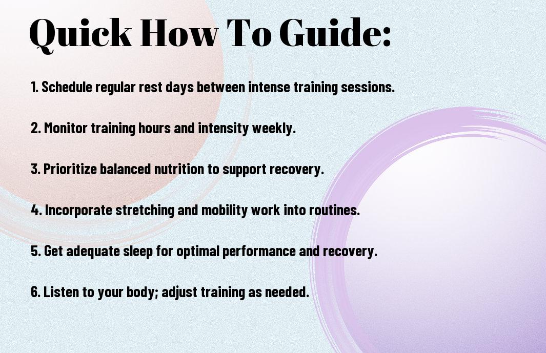 Many athletes experience the fine line between pushing their limits and overtraining, which can lead to burnout and injuries. Understanding how to balance intensity, recovery, and overall wellness is important for your long-term success in sports. In this guide, you will learn effective strategies to recognize the signs of overtraining, implement adequate rest periods, and optimize your training regimen to maintain peak performance without compromising your health. By following these tips, you can ensure that your dedication to your sport translates into sustainable growth and achievement.